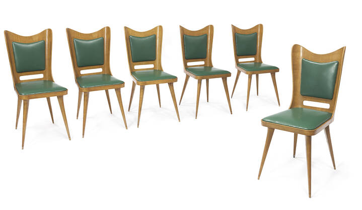 Sei sedie in acero bianco con seduta imbottita in skai,