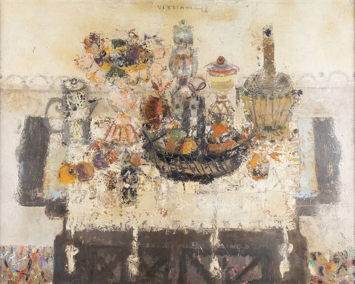 "Natura morta su vecchio mobile" 1964