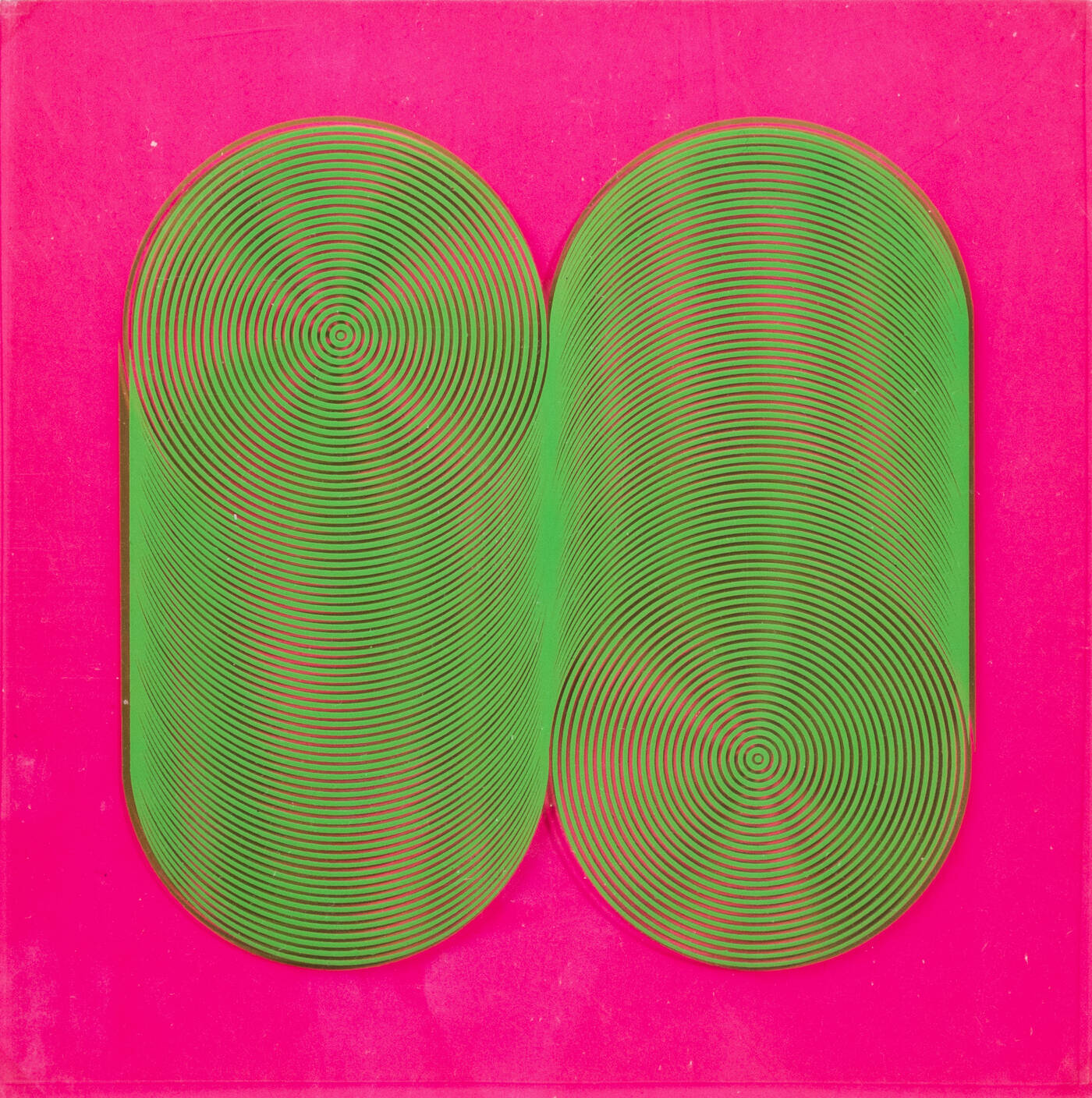 19x19, serigrafia (composizione cinestetica in acetato su cartoncino fuxia e su plexiglas)