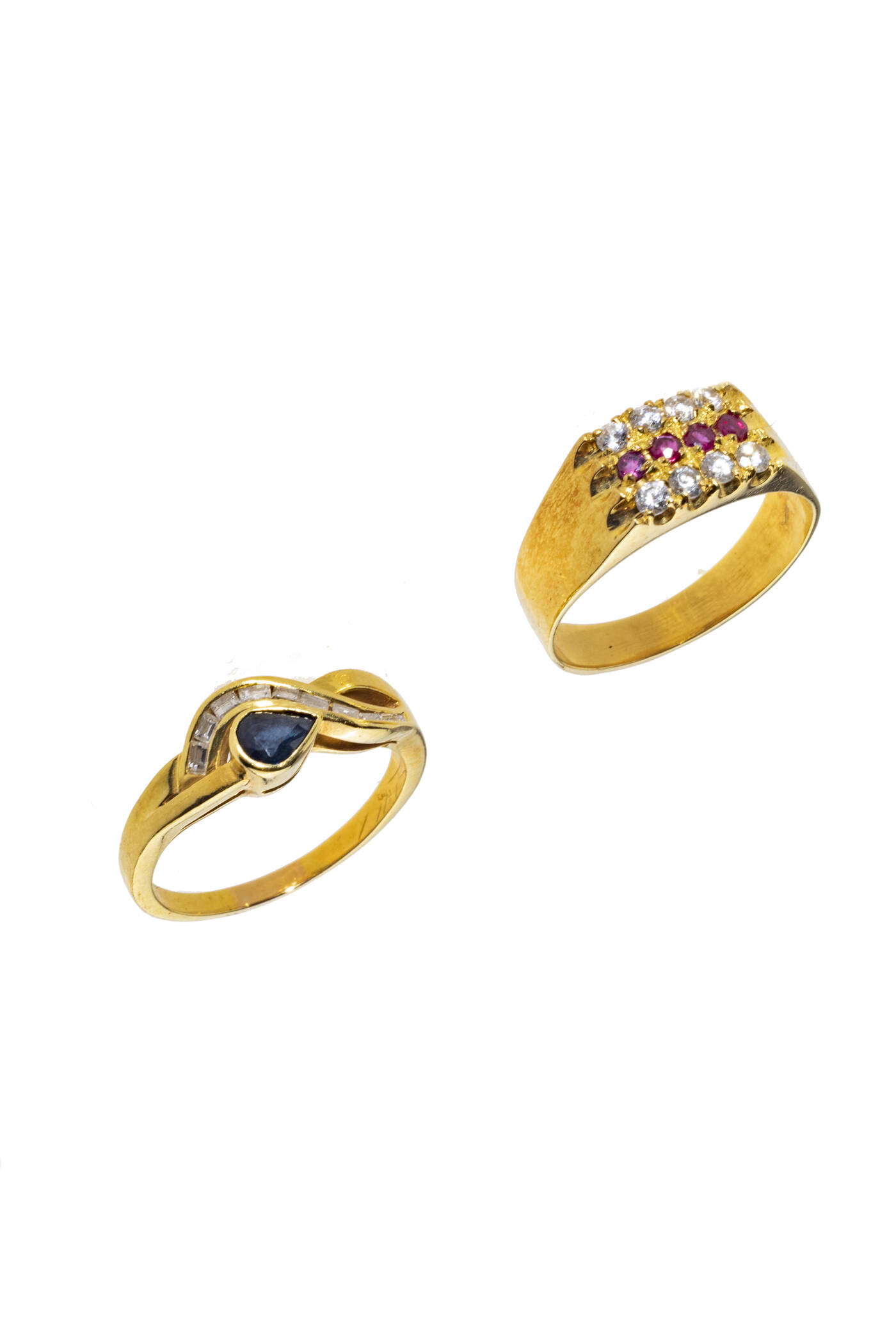 -sommità con con fila centrale di rubini per totali ct 0,12 ca e due file laterali di diamanti per totali ct 0,16 ca. Peso gr 6,1. Misura 21 (61)