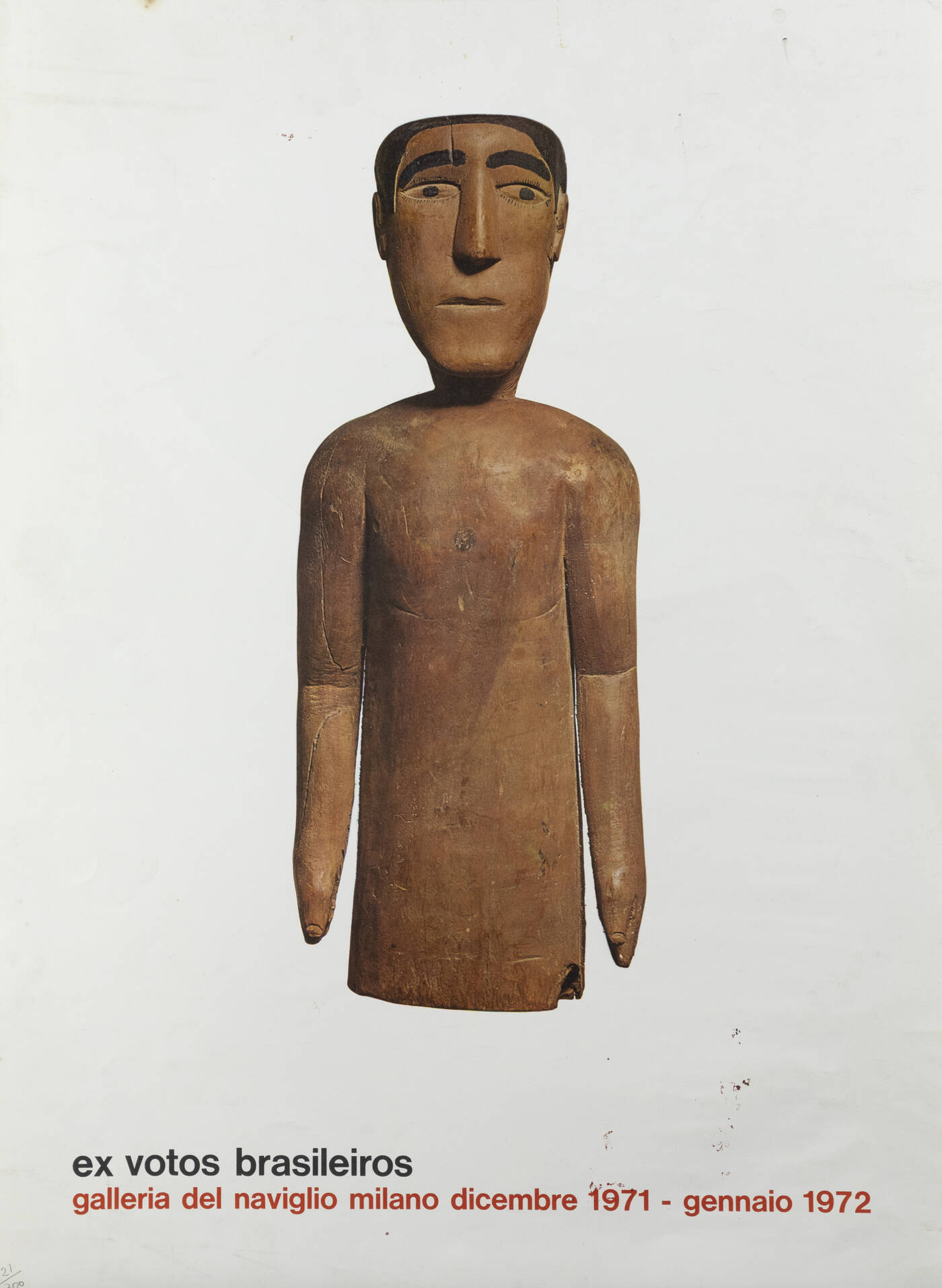 Manifesto della mostra "Ex votos brasileiros", Galleria del Naviglio, Milano, dicembre 1971 - gennaio1972.