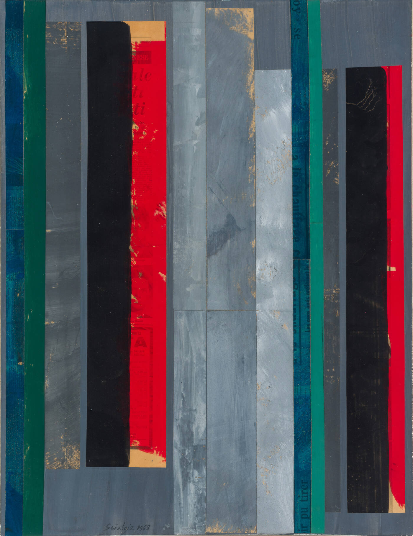 "Senza titolo" 1968 70x54, collage su cartoncino applicato su tavola Opera firmata e datata in basso al centro Opera archiviata presso la Fondazione Toti Scialoja, Roma con il n. 076825 (autentica rilasciata il 27/05/2025)