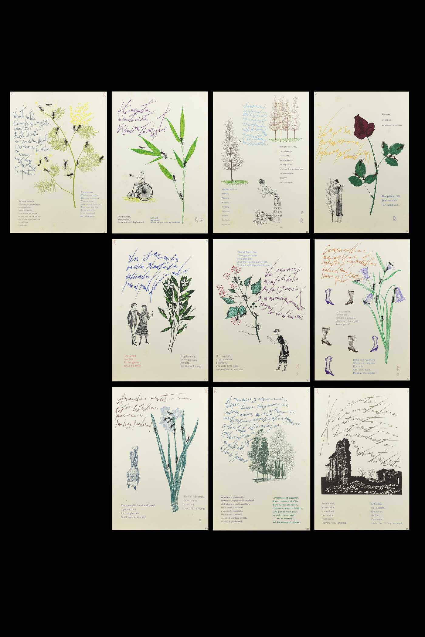 "Introduzione alla Favola" 1971 48,5x33, litografia, es. 72/200 Ciascuna siglata a stampa da Abel Vallmitjana e da Rafael Alberti in basso a destra Cartella di 10 litografie accompagnate dalla calligrafia di Rafael Alberti.